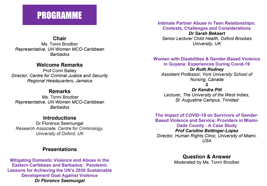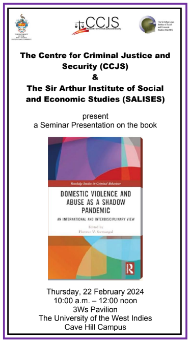 A seminar presentation on the book: Domestic Violence and Abuse as a Shadow Pandemic and International and Interdisciplinary View. Edited by: Dr Florence Seemungal.